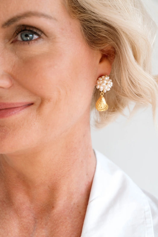 Sold outGold Oyster Shell & Pearl Earrings