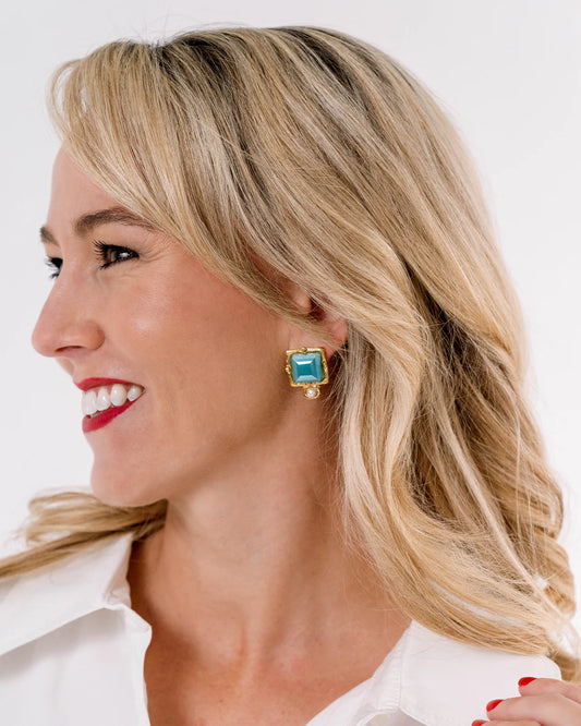Madeline Blue French Glass Stud Earrings