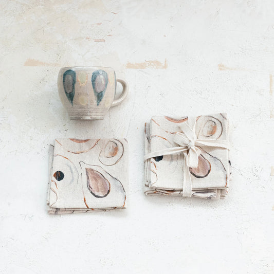 Set/4 Embroidered Cocktail Napkins - Hydrangea
