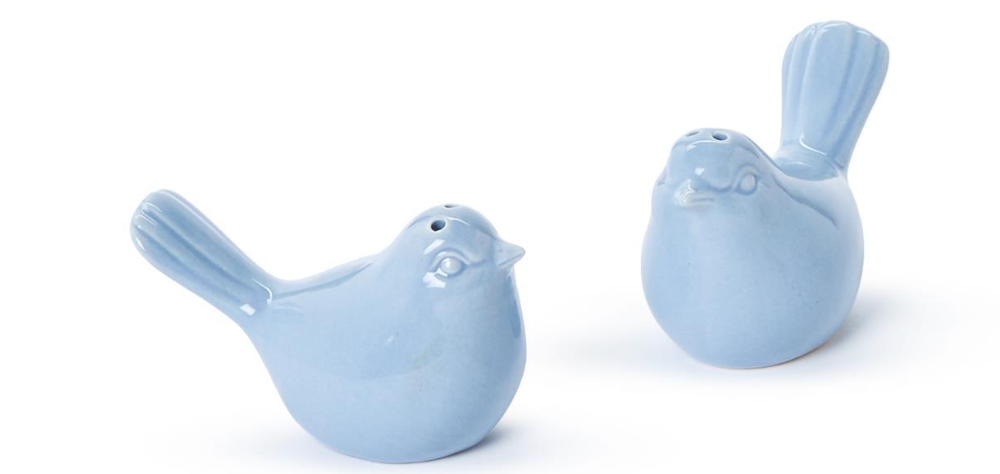 These beautifully sculpted salt and pepper shaker set evokes the joy of hearing springtime birds outside your window. Crafted from porcelain, they are coated in a lustrous white or blue glaze. a perfect present for any occasion.