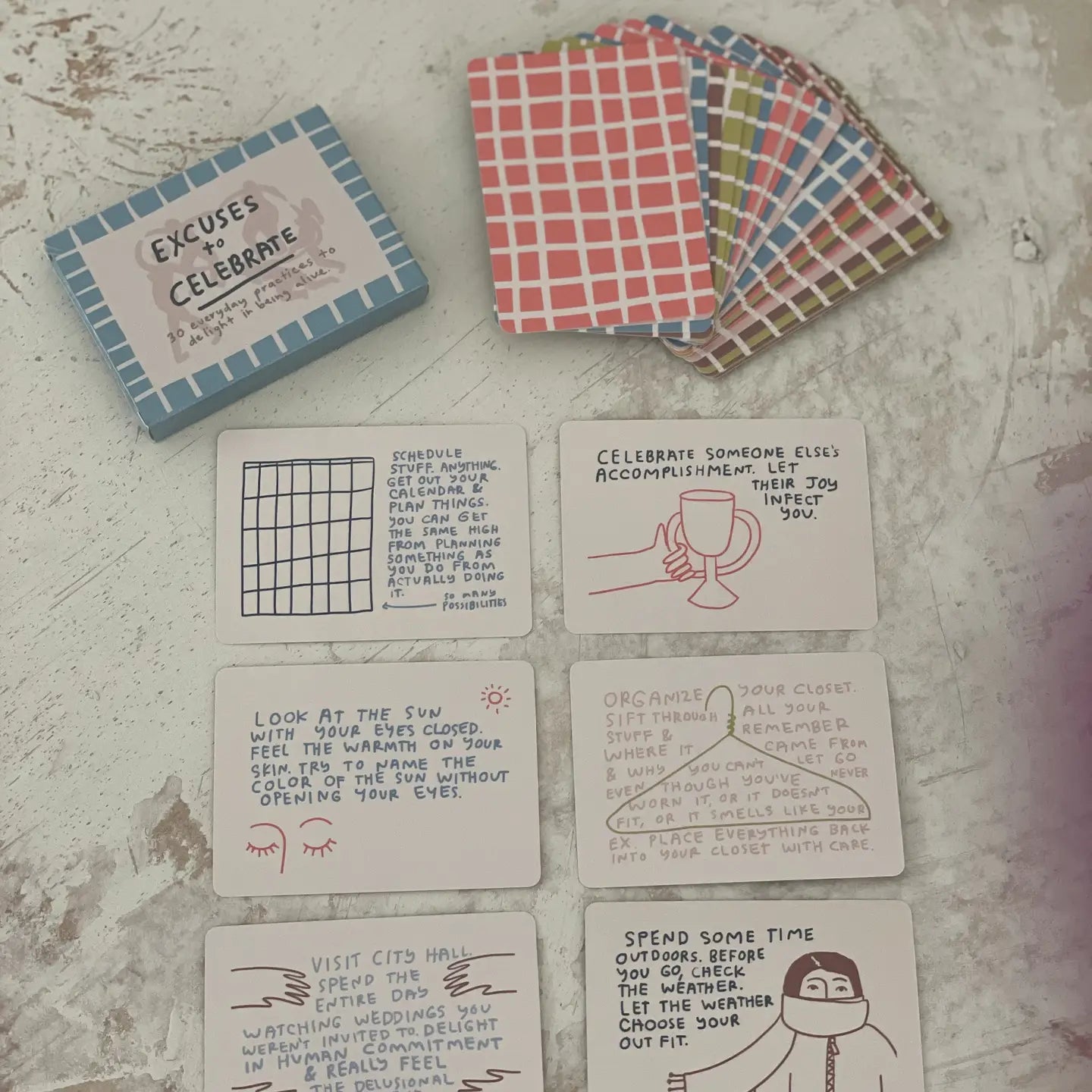 We poured our energetic heart and soul into our new EXCUSES TO CELEBRATE deck and I am really happy with how it turned out. After the year(s) we've all had, I think it's nice to find some excuses to celebrate with the people you love. 3.5x5 inches