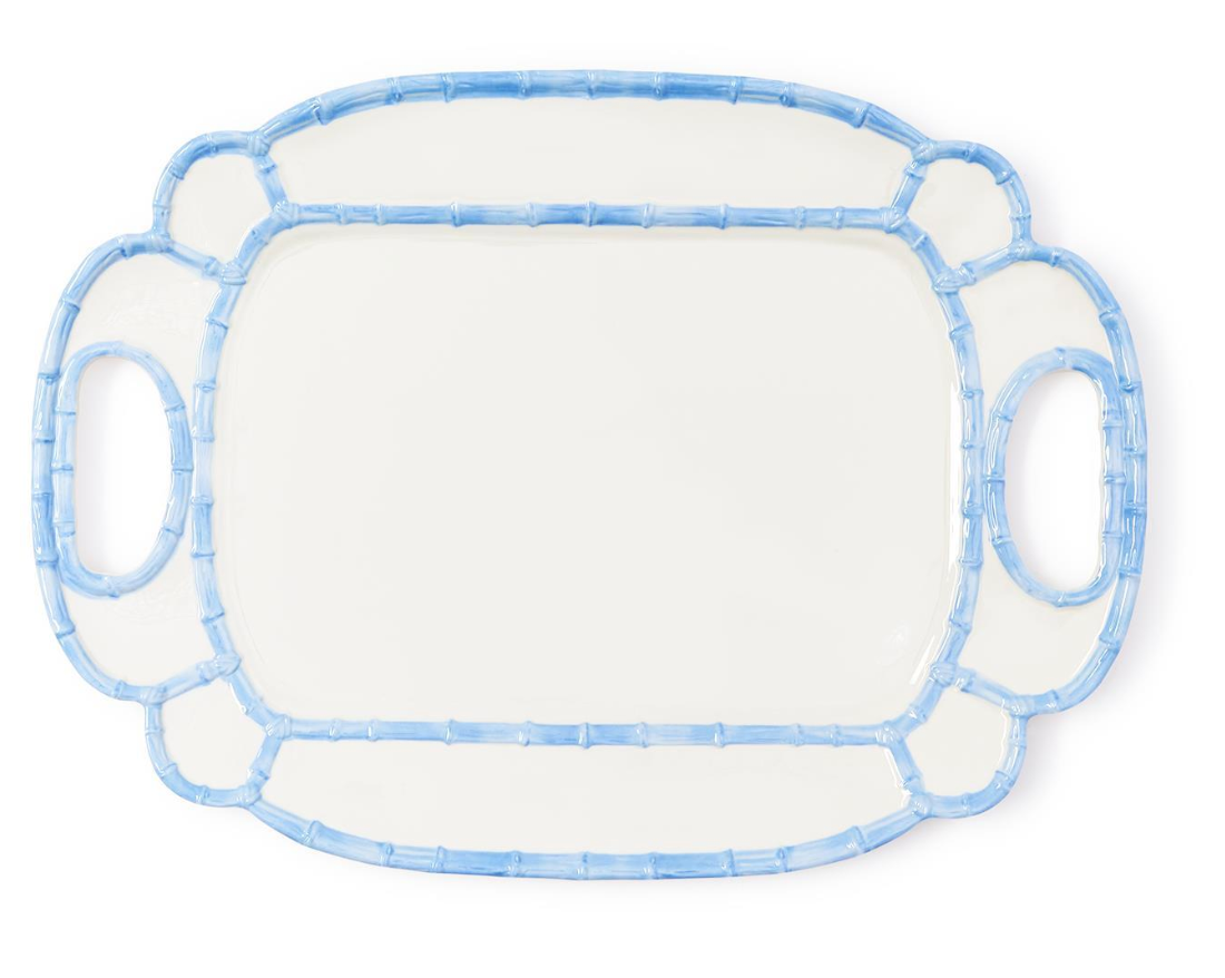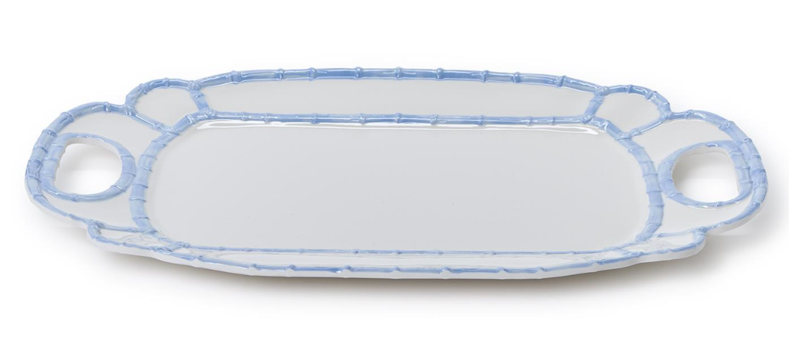 Serve elegantly with the French Blue Bamboo Touch Platter. Perfect for serving up your favorite appetizers or displaying decorative accents, this 100% melamine dish exudes elegance with its bamboo rim design. The dishwasher-safe and shatter-resistant construction ensures convenience and durability, making it ideal for everyday use or special occasions.