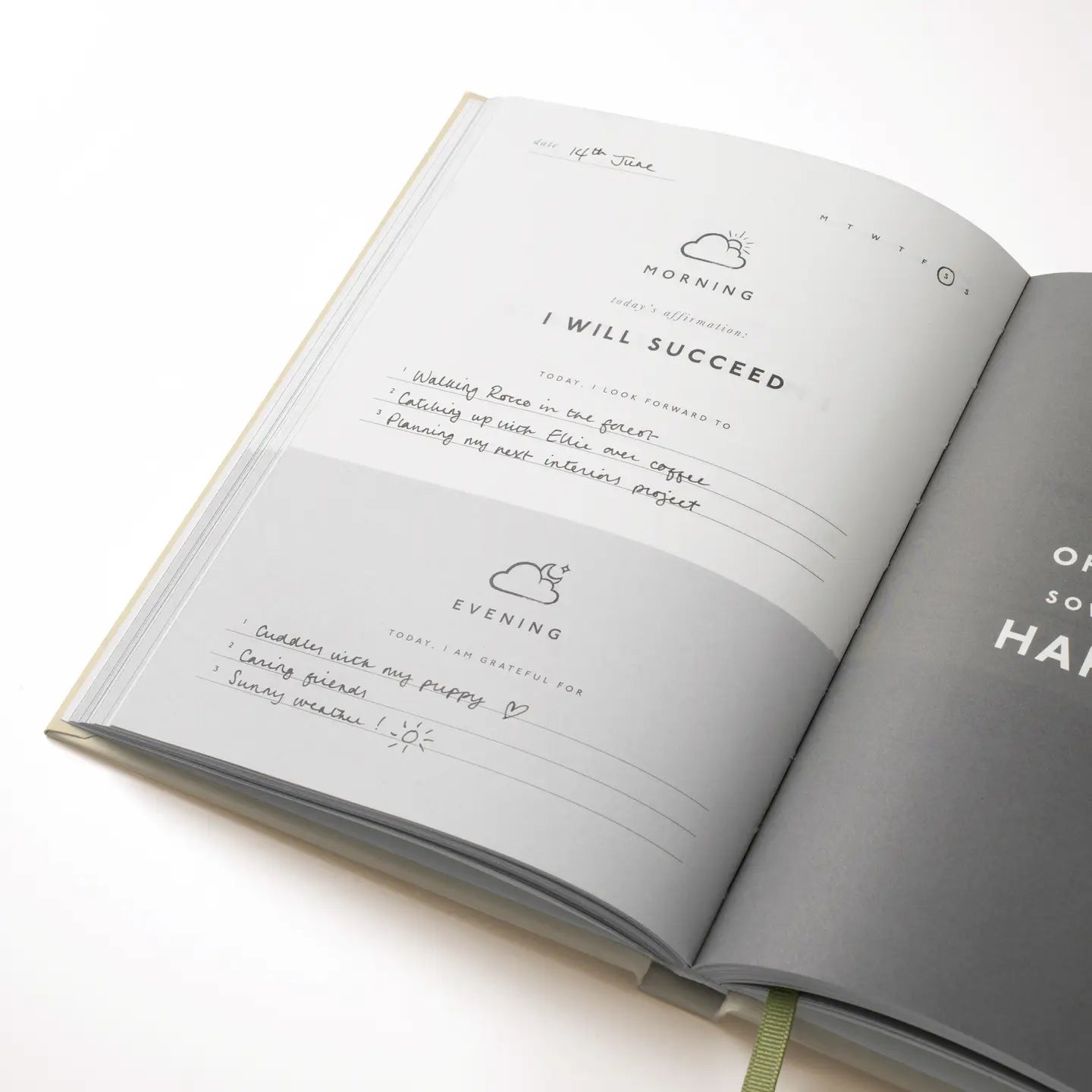 What’s inside: - Five months of guided entries – undated for start-anytime use - Morning + evening prompts for quick, mindful check-ins - 30-day reflections to capture thoughts, lessons and highlights - Affirmations and inspiring motto pages for encouragement - Simple activities to spark gratitude on good days and hard ones - Hardcover with smooth, premium paper inside - Balanced page layouts with space to write and room to breathe