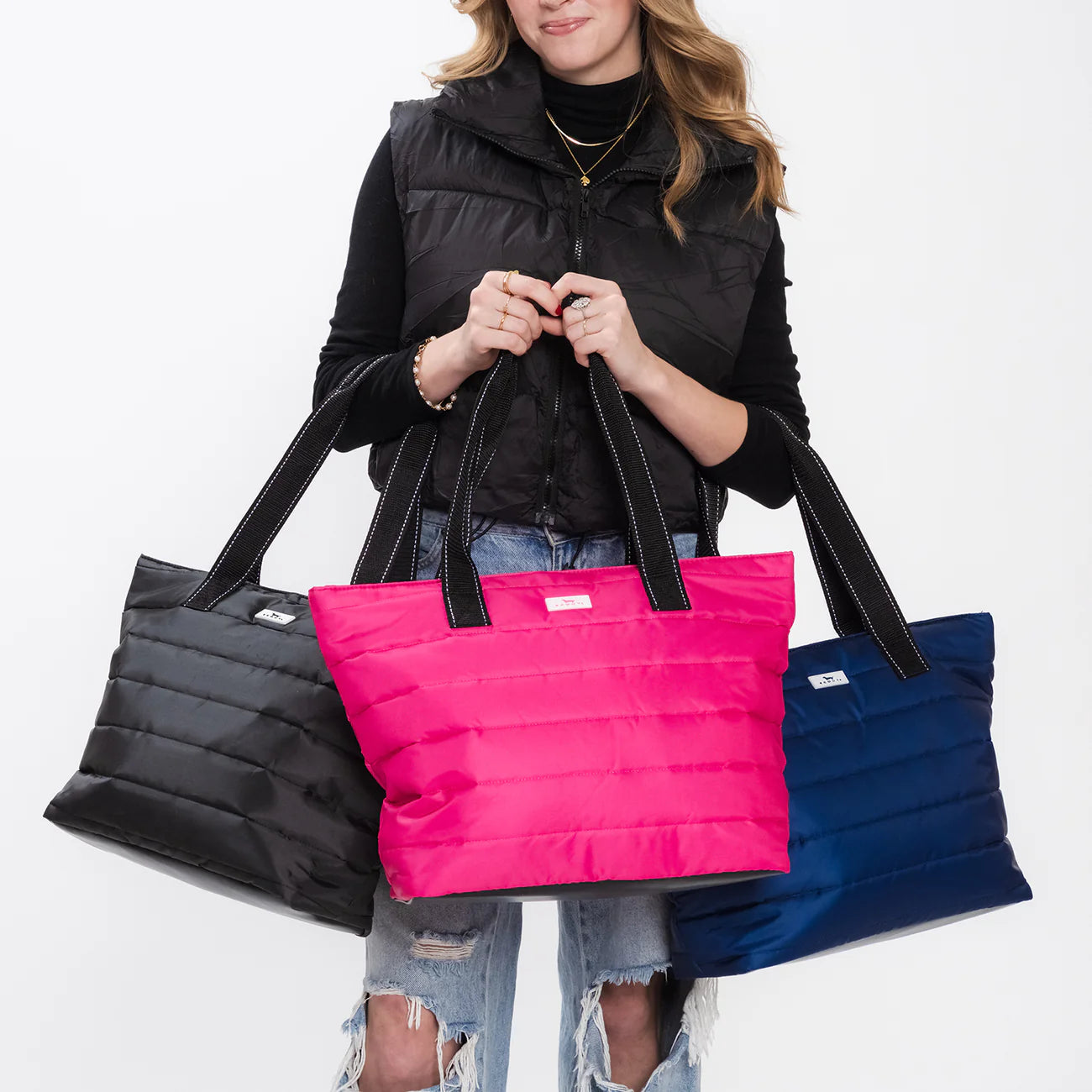 EXCELLENT EVERYDAY CARRYALL. Not too big, not too small, this medium-size puffer tote is perfect for all your daily toting and/or commuting needs. Fits multiple essentials from full-size files and notebooks to e-reading devices to headphones and snacks. Staying organized is easy with interior pockets and divided compartments. What you'll love most is how it feels: soft and cozy yet durable and wipeable. Prepare to be asked where you got it.