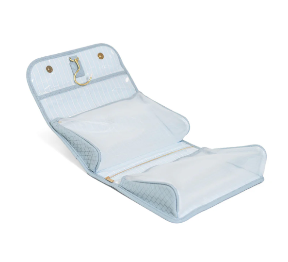 This zippered pouch is ideal for toiletries, cosmetics, and everything in between. Designed to stand on its own with an interior pocket for smaller needs, it’s both functional and beautiful—an elevated essential for any TRVL set.