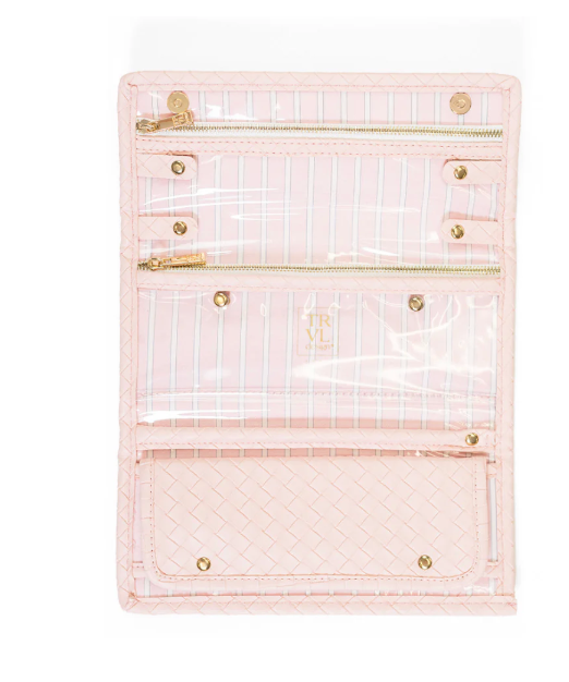 Designed to keep your jewelry secure and organized wherever you go. With smart interior details and a coordinating pinstripe lining, it’s a polished essential that pairs beautifully with the entire TRVL collection.