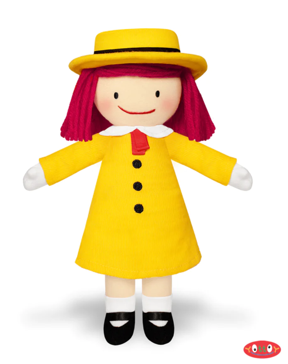 Madeline brightens playtime adventures in her soft yellow, fine-wale corduroy dress that matches her look in the original Madeline book! This Madeline doll measures 10" tall from her soft yellow hat atop her red yarn hair to her satin ribbon trimmed black shoes. With sewn-on clothing made of a combination of fabric textures, and her iconic embroidered expression, this Madeline Soft Doll is an ideal companion for all ages.