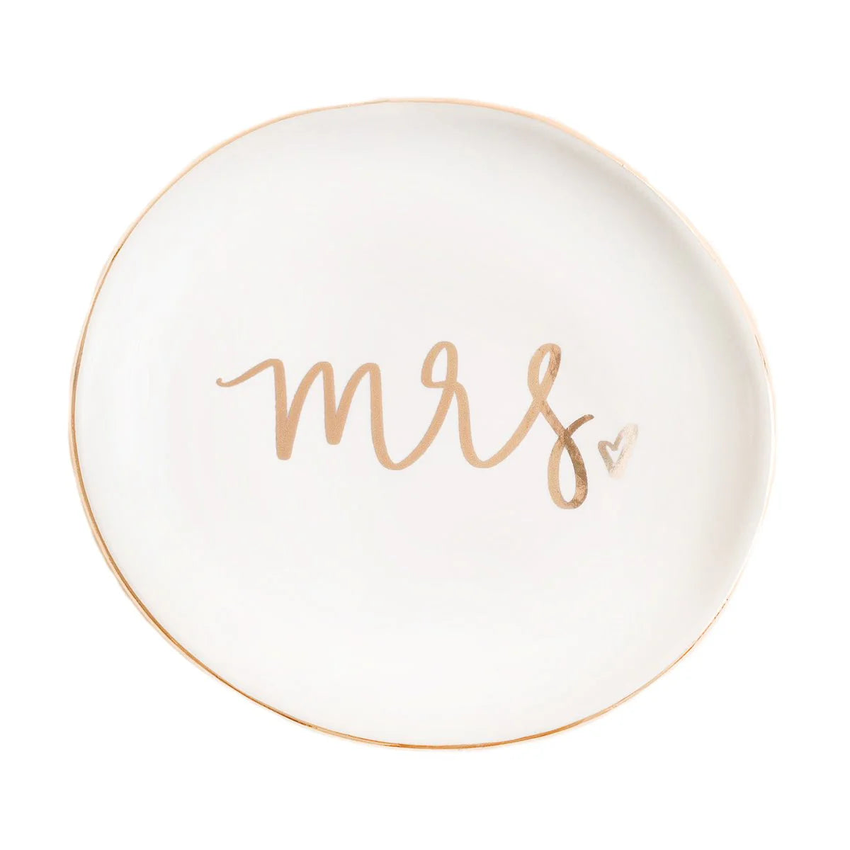 Every bride & bride to be will swoon over their new Mrs. Jewelry Dish! Our beautiful gold foil trinket tray is perfect for placing your wedding ring or earrings to keep them in a safe place. The gold foil details add a touch of chic glam, perfect for your office or bedroom! This beautiful tray also makes a great gift for the bride to be!