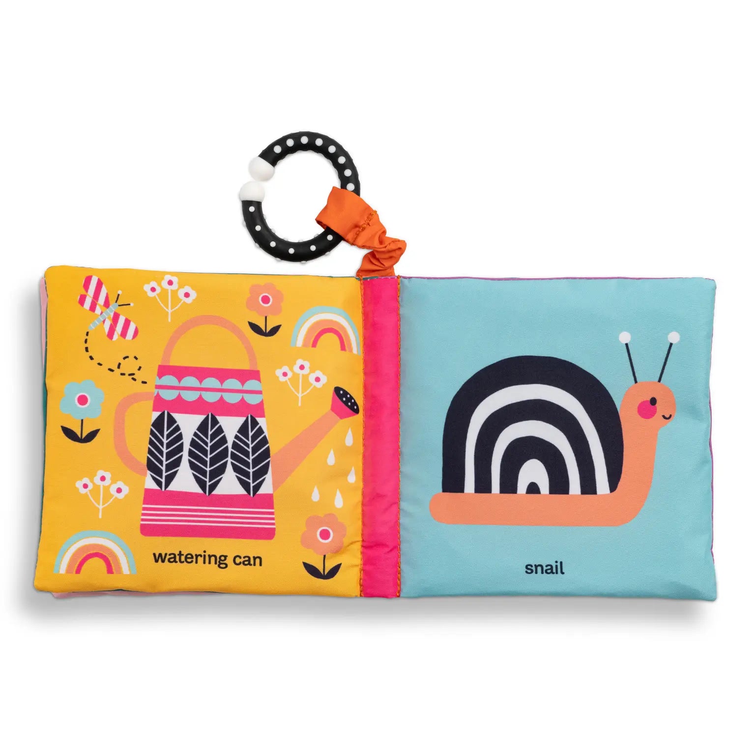Explore a garden in this crinkly cloth book with a teether!