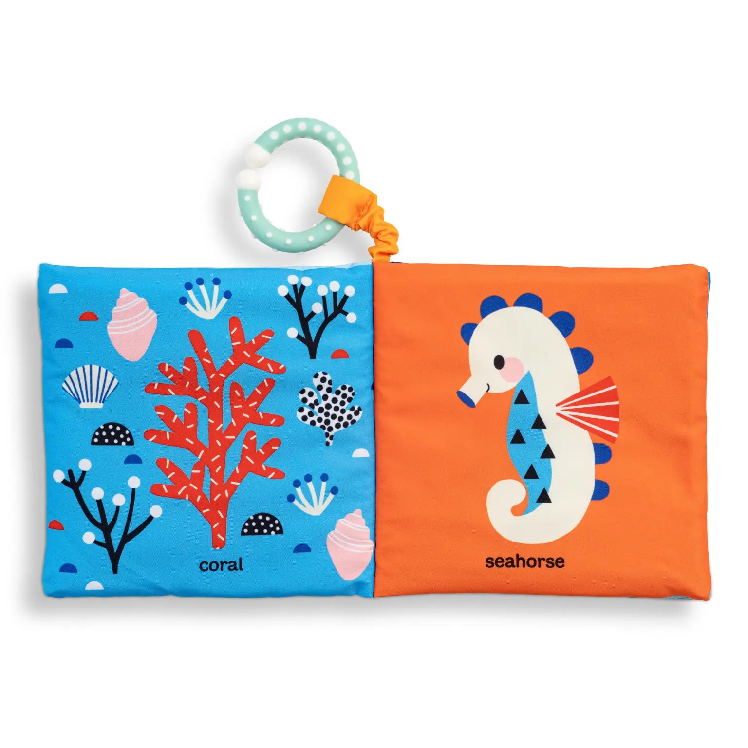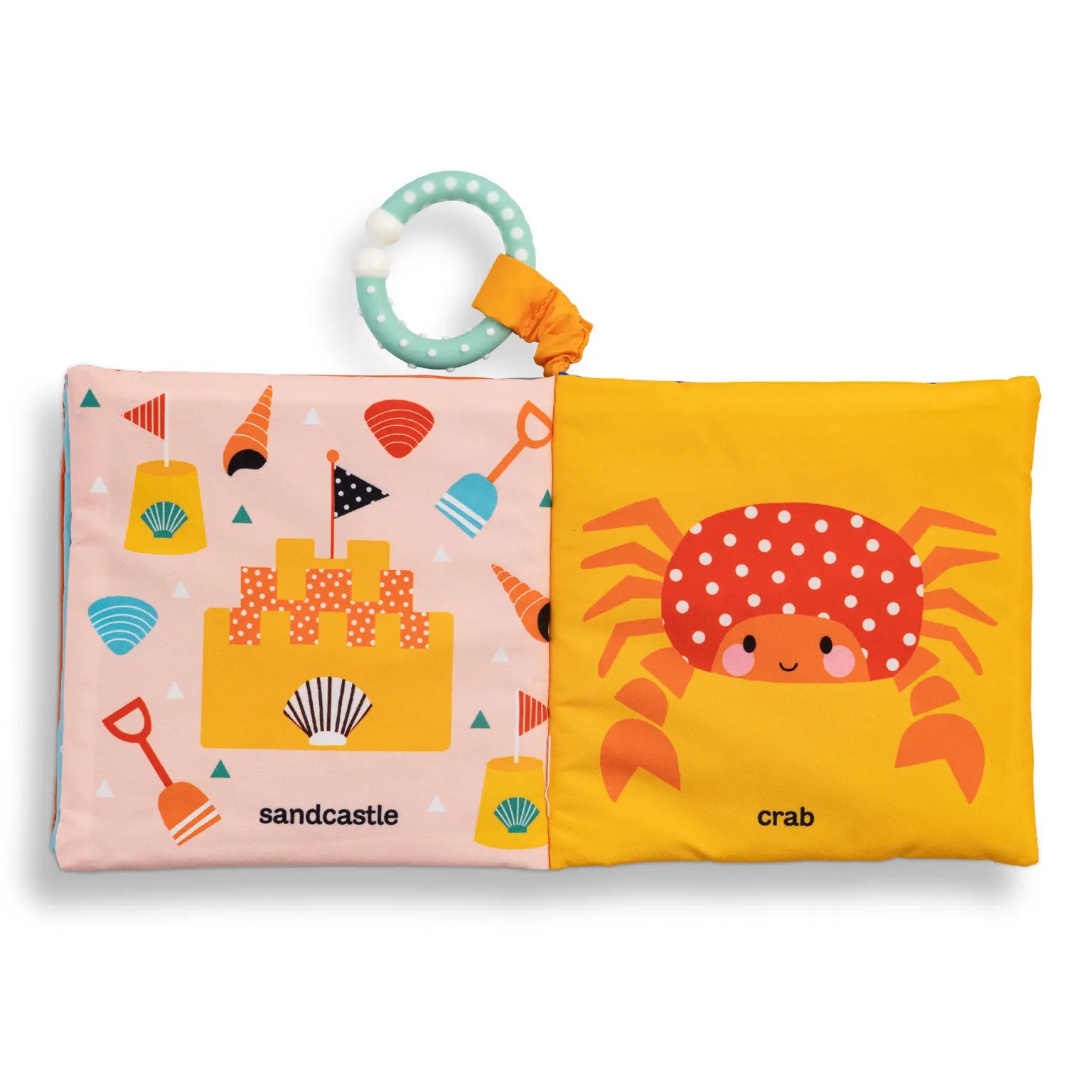 Introduce babies and toddlers to the seaside in this soft book with enticing crinkly pages. Through bright, colorful illustrations, little ones will learn first words like coral, sandcastle, and boat while developing their senses and fine motor skills. Perfect for repeat readings (and crinkling!), this cloth book packaged with a teether is the ideal gift for any young child and caregiver.