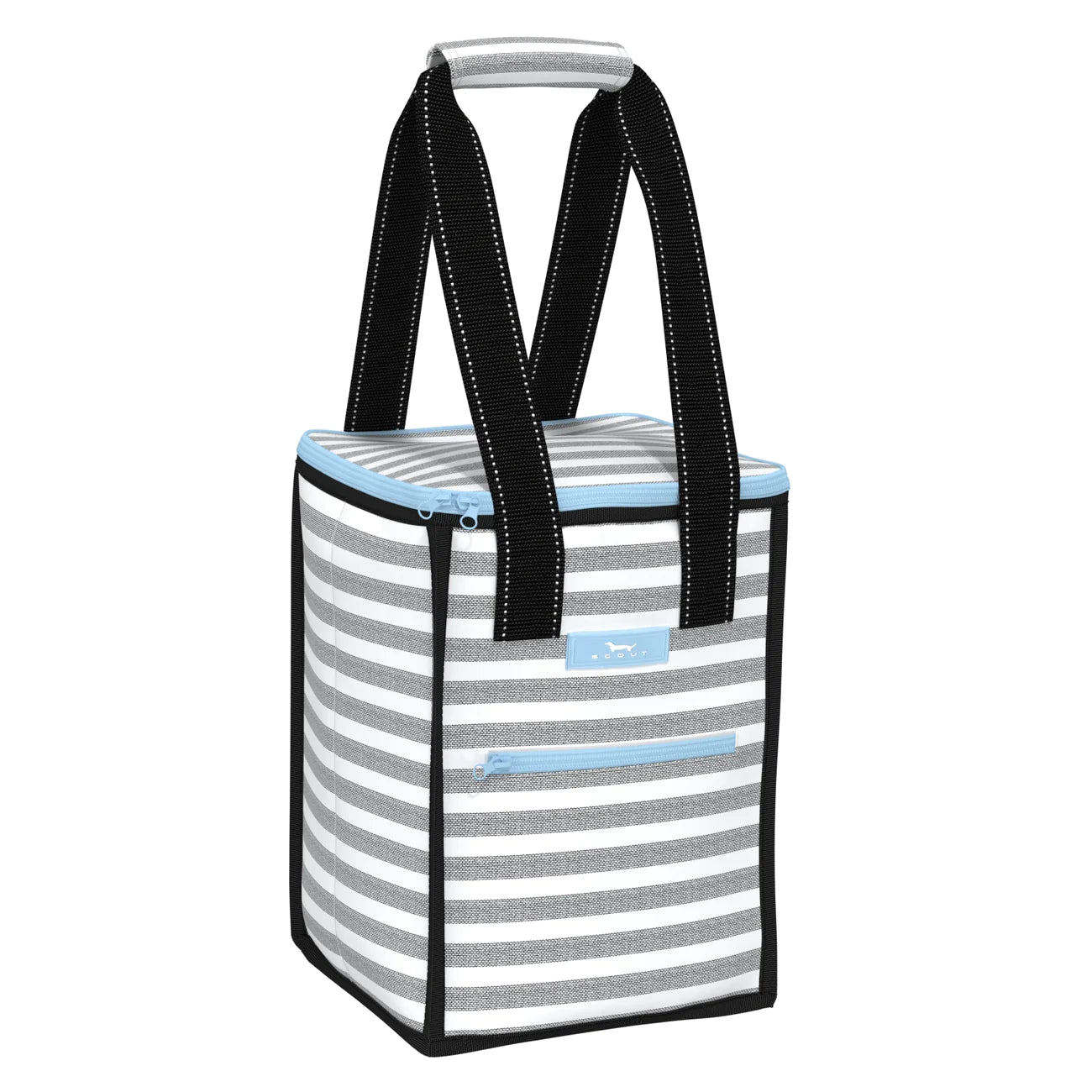 YOU HAD ME AT 5 BOTTLES OF WINE (UPRIGHT). The perfect size for small family outings, road trips, or a 12-hour shift, this tall, square cooler is a great shape for stacking containers. Stash napkins, utensils, or chocolate bars (no judgement!) in the outside pockets for quick access. Remember ice packs! Because it squishes flat in your suitcase, we love the Pleasure Chest for travel, and it makes a great leave-behind hostess gift.