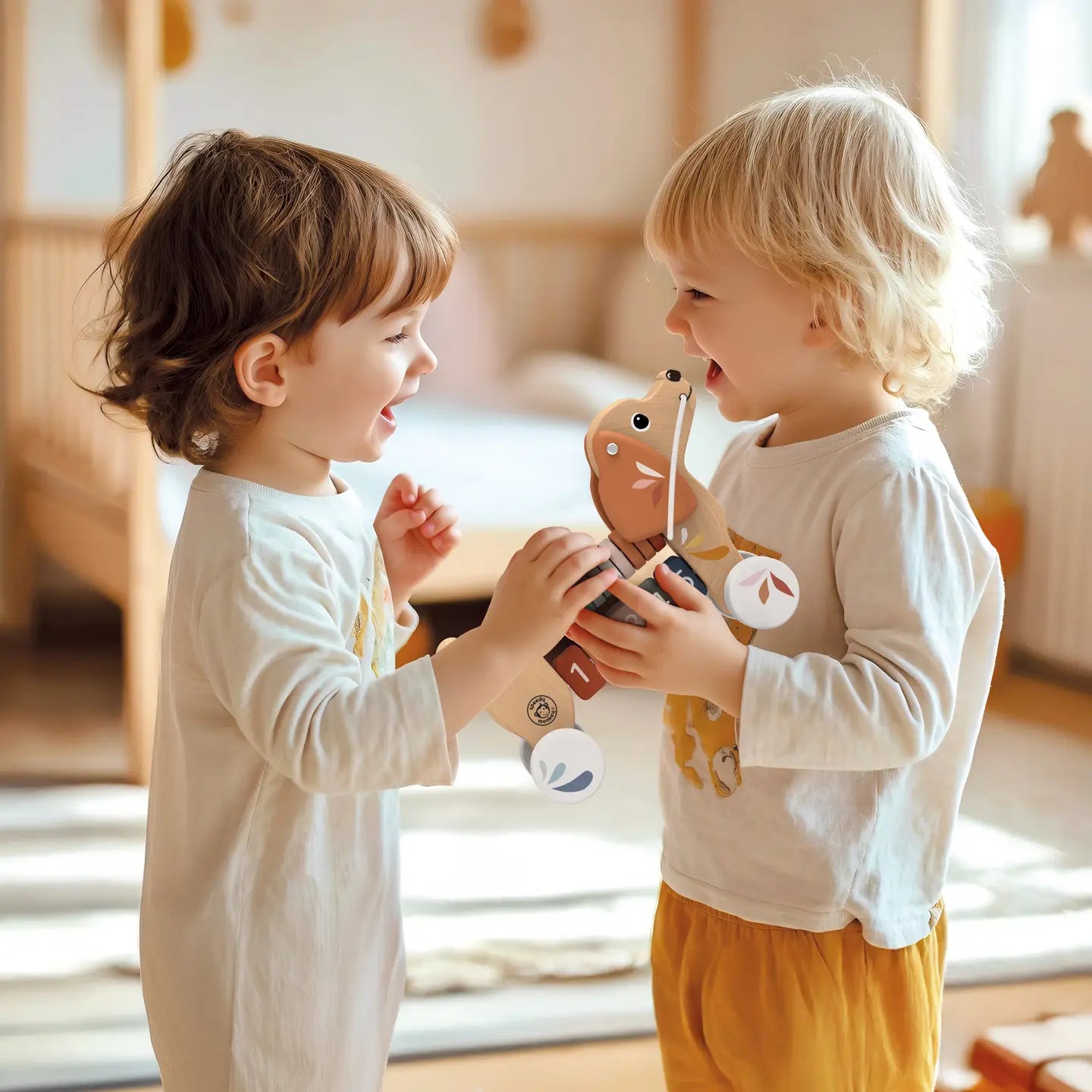 Introducing Puppy Pull along! Whether leading the way or tagging along behind, the Puppy Pull Along is more than just a toy, it’s a loyal friend in every step of your child’s early adventures! Meet your little one’s new best friend, the Puppy Pull Along! Designed to delight and encourage movement, this adorable wooden puppy rolls along wherever your toddler goes, making it the perfect companion for early walkers and adventurers aged 12 months and up. With its trendy multicolor finish and cheerful design, the Puppy Pull Along sparks imaginative play while promoting balance, coordination, and gross motor development. The easy-to-hold pull string allows your child to guide their pup on all kinds of journeys, indoors or out.