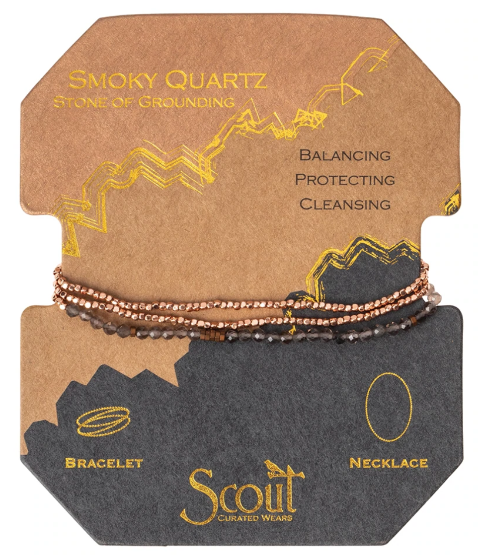 Faceted gemstones mix with tiny geometric metal beads to create a subtle and magical piece. Wraps as a bracelet 3 times or wear as a single strand necklace.