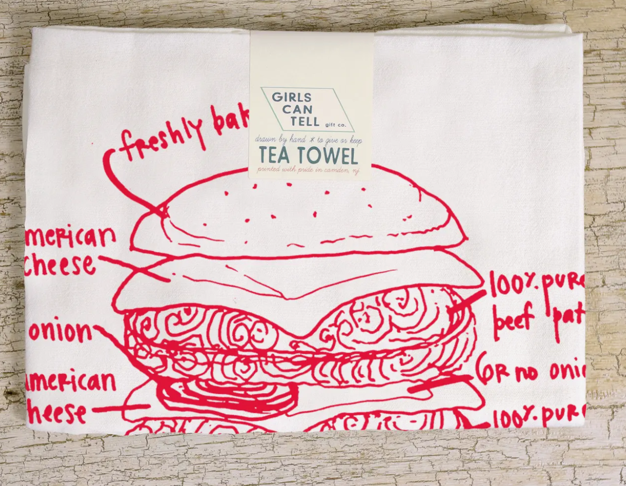 Is a burger a sandwich? Or do burgers occupy their own category? All we know is that they are perhaps the perfect food, so we made this burger tea towel to honor them.