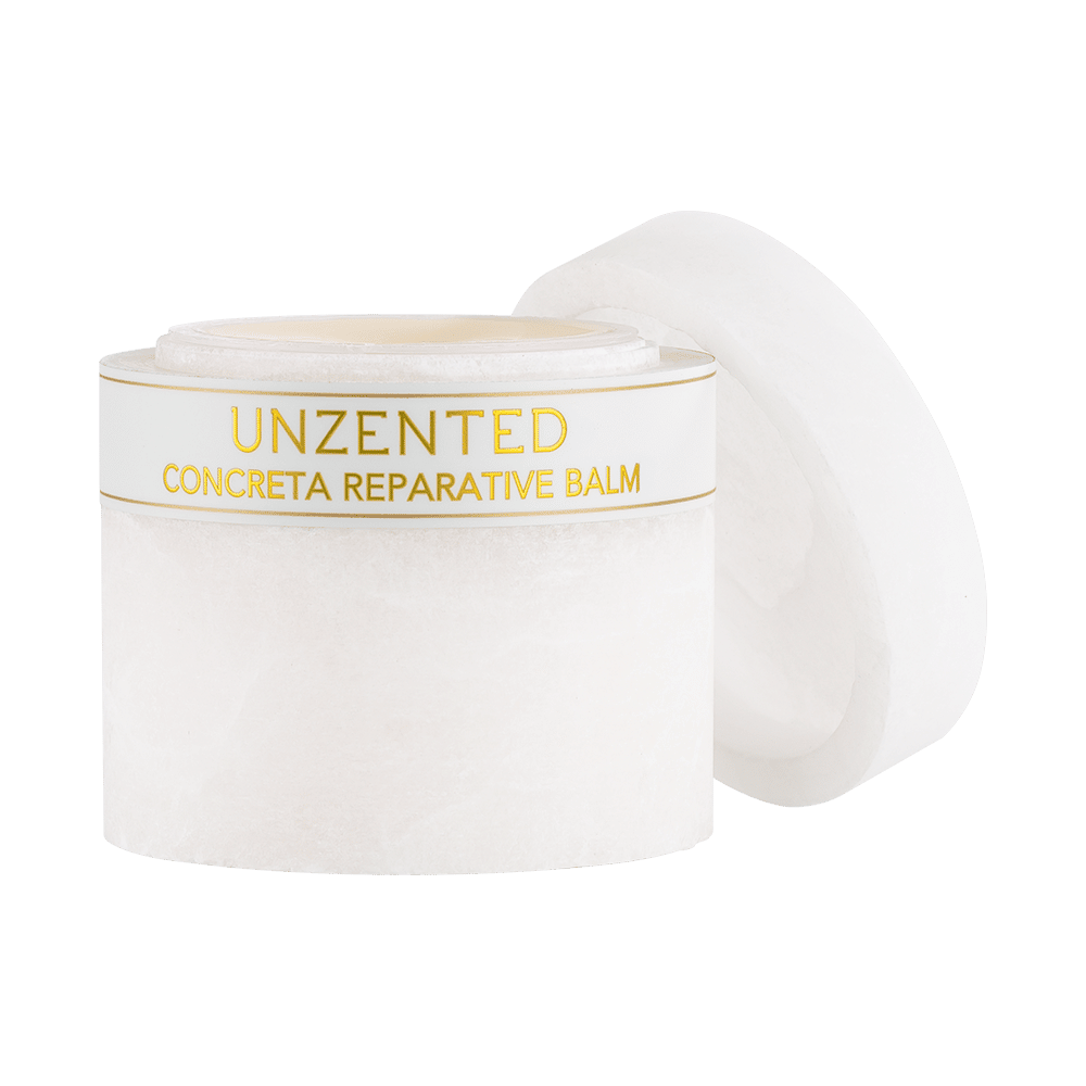 This deep conditioning daily treatment balm transforms even the driest skin. With a powerful infusion of organic shea butter and coconut oil UNZENTED Concreta softens and restores skin’s natural beauty. An infusion of paracress plant extract helps skin appear smooth, plump and firm, with visible results starting on the very first use. UNZENTED Concreta is ideal for daily use on face (eyelids, under eyes, lips), and body (neck, décolleté, elbows, cuticles, heels, knees, and feet).