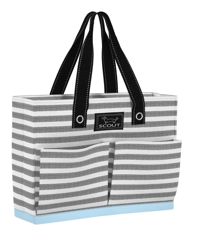 A SLIM, STRUCTURED, STURDY PERSONAL BAG. This structured everyday bag has a slim profile that carries close to the body while fitting files, a laptop, lunch, water bottle, and anything else you need to slay your day. Thanks to four large outside pockets, this sturdy, lightweight bag is a popular pick for moms, teachers, students, and nurses. For a larger version, check out The BJ Bag.
