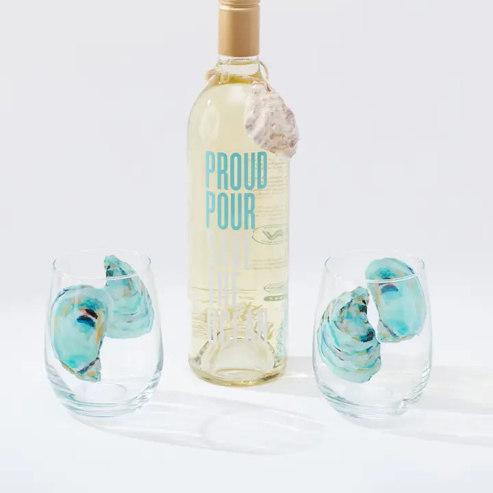 Crafted from high-quality materials, this stemless wine glass minimizes the risk of breakage, making it a durable and long-lasting option for both indoor and outdoor use. The sleek and streamlined design ensures a comfortable grip, while the 15oz capacity is perfect for serving your favorite wine or beverage. The standout feature of this wine glass is the original artwork by Kim Hovell - Providence. This artwork features Kim's staple: oysters. The colorful oyster shells add a unique coastal vibe to your barware.
